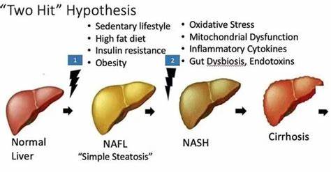 NAFLD 和非酒精性脂肪性肝炎(NASH)都和肥胖、血脂异常、2 型糖尿病以及代谢综合征有着紧密的联系。相较于仅患 NAFLD 的人群或普通人群,NASH 患者更易出现肥胖或代谢紊乱的情况。通过配对活检(治疗前后)研究可以发现,随着时间的流逝,NASH 有可能转变回 NAFLD;那些没有 NASH 但活检结果显示有纤维化的患者,可能意味着他们曾经患有 NASH 不过已经发生了逆转。