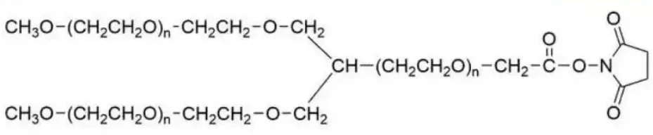 中文名称:Y型聚乙二醇琥珀酰亚胺乙酸酯,Y-Shaped PEG琥珀酰亚胺乙酸酯