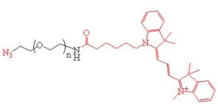 叠氮基团(N3/Azide):该基团具有良好的反应活性,可以与含有炔烃或其他的反应物进行“点击化学”反应,形成稳定的1,2,3-三唑衍生物。花青素Cy3:Cy3是一种荧光染料,其荧光发射波长位于近红外区域,能够避免生物体自发荧光的干扰,从而应用于荧光成像和生物分析中。