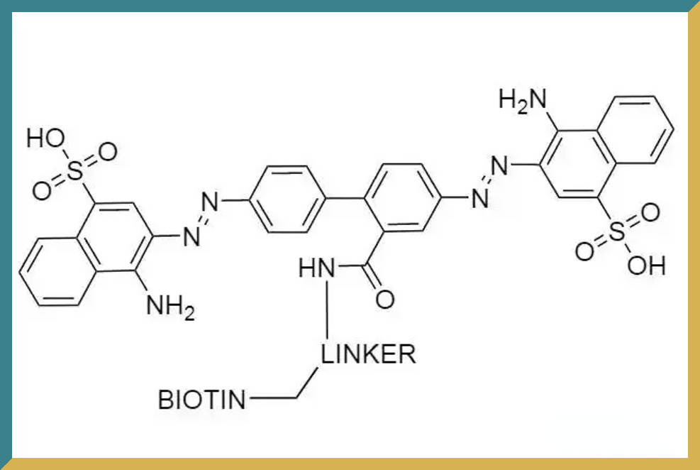 结构特点:刚果红部分负责识别 β‑折叠片结构的淀粉样蛋白,生物素部分则提供与链霉亲和素/亲和素结合的高亲和力位点。