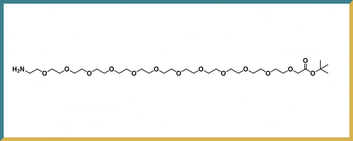 NH2-PEG12-CH2COOtBu(中文常称为“氨基十二聚乙二醇叔丁酯”)是一种功能化的聚乙二醇(PEG)衍生物。