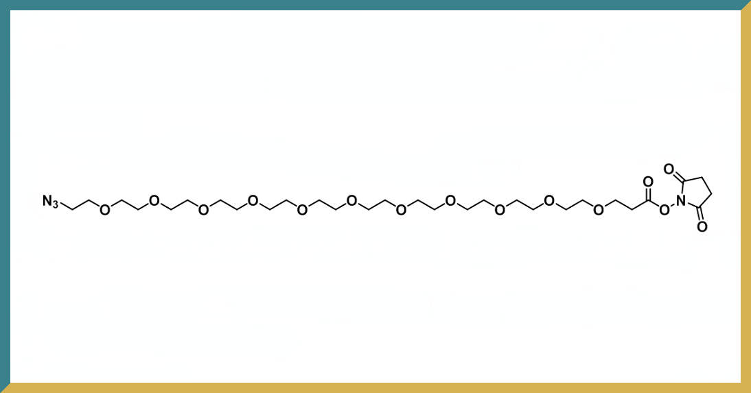 它含有叠氮基团(Azido group)、11个乙二醇单元组成的聚乙二醇(PEG11)链段,以及活性极高的N-羟基琥珀酰亚胺酯(NHS Ester)构成的化学试剂。