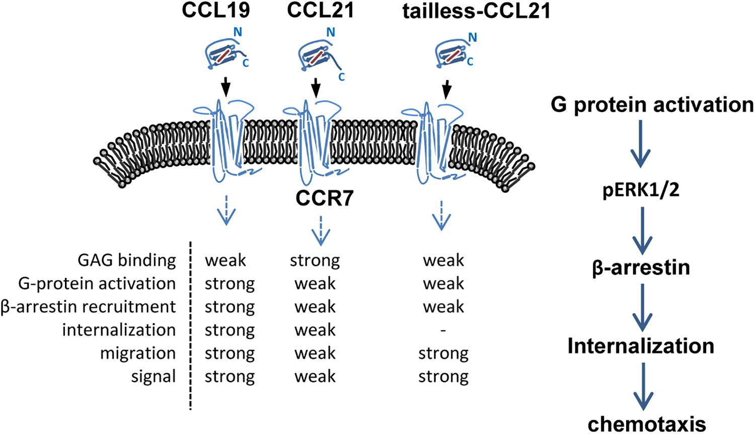 CCL19隶属于CC趋化因子家族,该家族成员的共同特征是氨基酸序列中存在两个相邻的半胱氨酸(C-C)基序。CC趋化因子家族是趋化因子超家族中规模最大的亚群,主要参与淋巴细胞、单核细胞等免疫细胞的募集与活化,在免疫应答调控和炎症反应中扮演关键角色。CCL19与CCL21共同作为趋化因子受体CCR7的特异性配体,构成CCL19/CCL21-CCR7调控轴,成为调控免疫细胞归巢的核心通路。