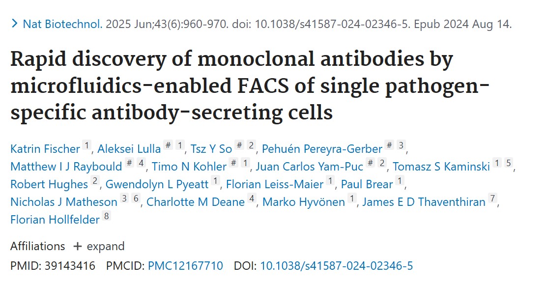 文献解析|微流控技术结合流式细胞术快速发现病原体特异性单克隆抗体的创新方法解析