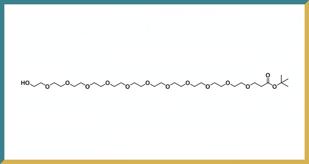 PEG11 链段:由 11 个聚乙二醇(Polyethylene Glycol)单元组成,形成了一个长度适中、灵活性极佳的亲水链段。这一段的存在显著提升了分子在水性环境中的溶解度和扩散性。