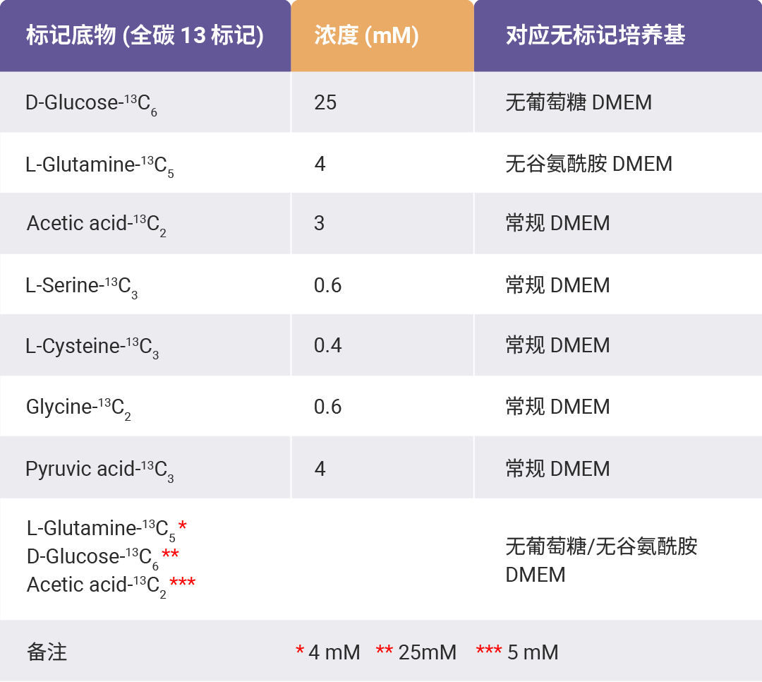 这些全碳 13 标记化合物,覆盖了糖酵解、TCA 循环、氨基酸代谢和谷胱甘肽合成等关键代谢通路,使研究者能够根据碳 13 标记原子追踪其在复杂网络中的去向。
