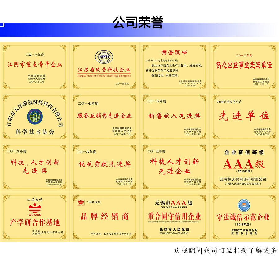 目前,公司拥有2项发明专利,13项实用新型专利,3个系列产品通过了江苏省级新产品鉴定及江阴市科技成果鉴定,分别是环保型碳氢清洗剂、高纯度烷烃溶剂油、140#纤维级溶剂油。