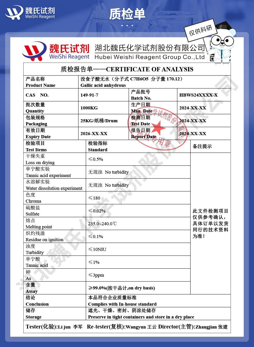 - 没食子酸 149-91-7 防腐剂显影剂分析试剂 源头